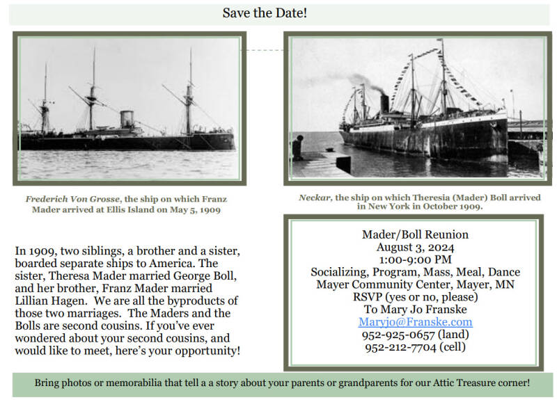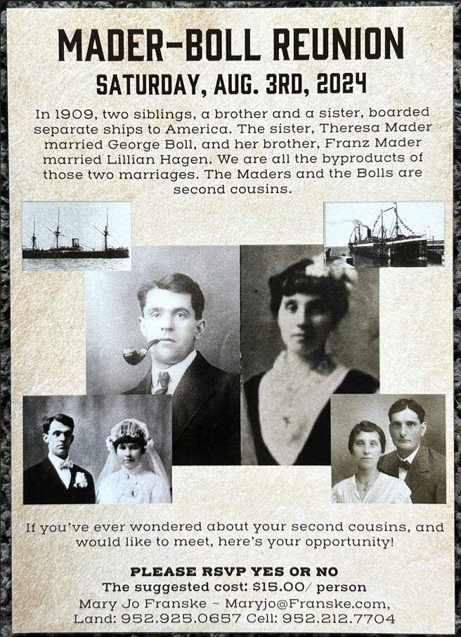 Mader-Boll Reunion Schedule