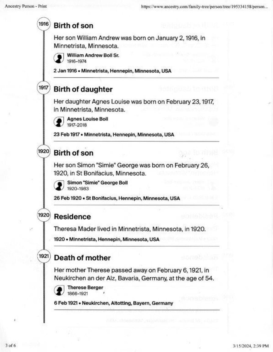 Ancestry story of Theresa Mader, 1885 -1946 (Page 3)